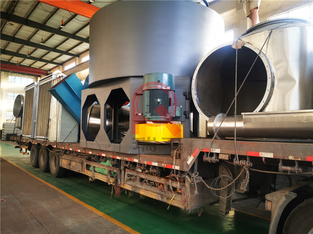XSG-17型闪蒸干燥机已制作完毕,准备发往贵精细化工有限公司。该闪蒸型号为非标闪蒸,主塔内直径1700mm,基于XSG-16型闪蒸的基础优化而来,比16型处理能力更大,能耗相对于XSG-18型能耗更低。配备除尘器为隔仓式分箱除尘器,5仓工作1仓清灰,优点是除尘效率高,布袋使用寿命更长。