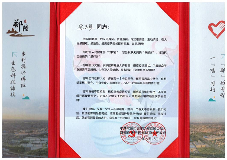 为弘扬抗击疫情正能量,助力郑陆接到打赢这场无硝烟的疫情防控阻击歼灭战,常州瑞强干燥的徐玉琴同志主动请缨,踊跃参与防疫志愿工作,奋力战斗在疫情防控的最前线。
