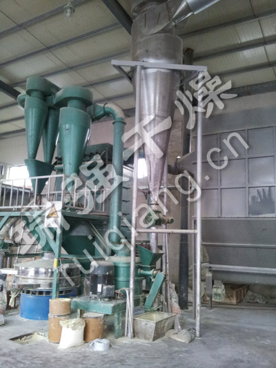 初效过滤器→送风机→散热器→热风进风管道→闪蒸干燥主机→主塔分级器→一级旋风分离器→二级脉冲除尘器→引风机→水膜除尘塔