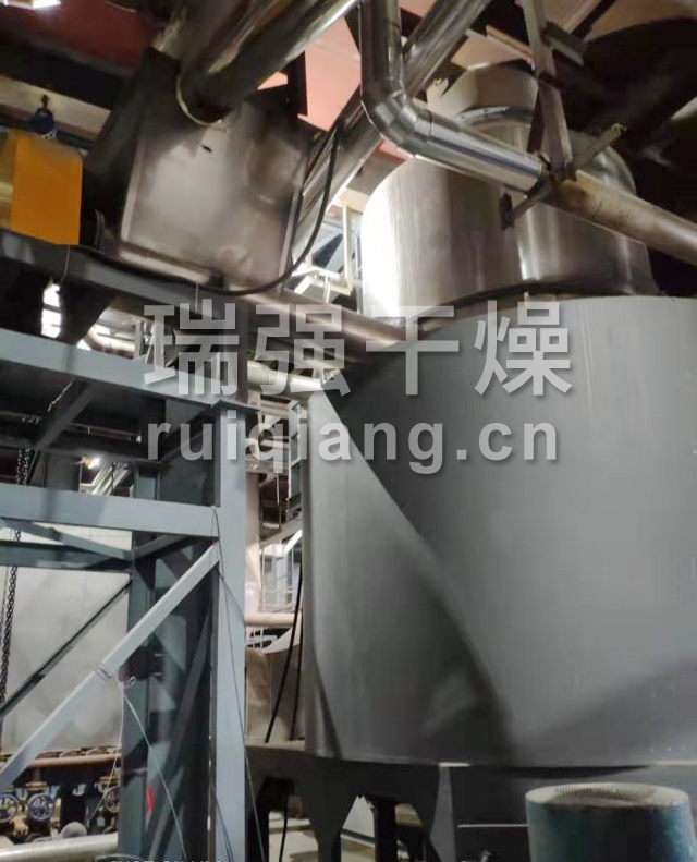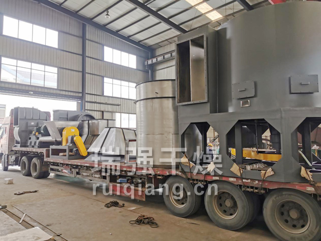 初效过滤器→送风机→散热器→热风进风管道→闪蒸干燥主机→主塔分级器→一级旋风分离器→二级布袋除尘器→引风机→排风烟囱