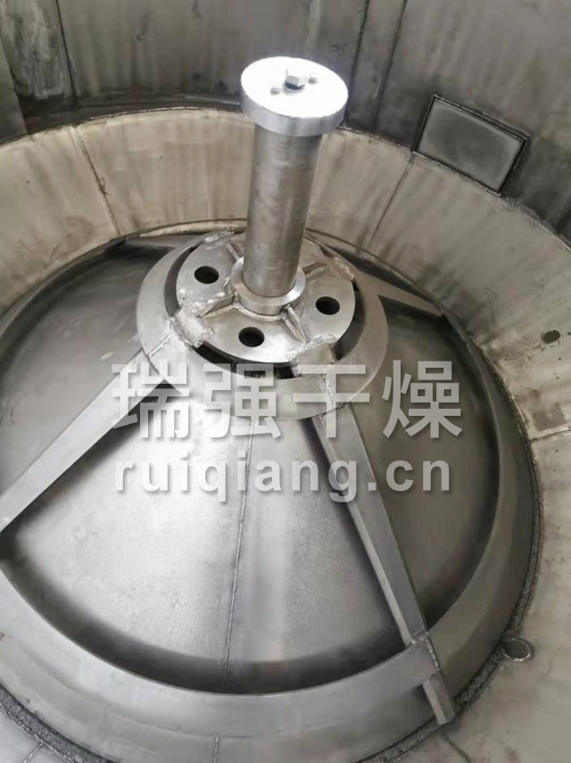 湿豆渣物料由双螺旋加料器进入干燥机主机内,在高速旋转搅拌器的强烈作用下,物料受到撞击,摩擦及剪切的作用下得到分散,块状物料迅速粉碎,与热空气充分接触触、受热、干燥。脱水后的干粉料随热气上升,分级环将大颗粒截留,小颗粒从环中心排出干燥器外,由手机系统收集,未干透或大块物料受离心力作用甩向壁器,重新落到底部被粉碎干燥。由于气固两相作旋转流动,固相惯性大于气相,固气两相间的相对速度较大,强化两相间的传热性质,所以该机生产强度高。